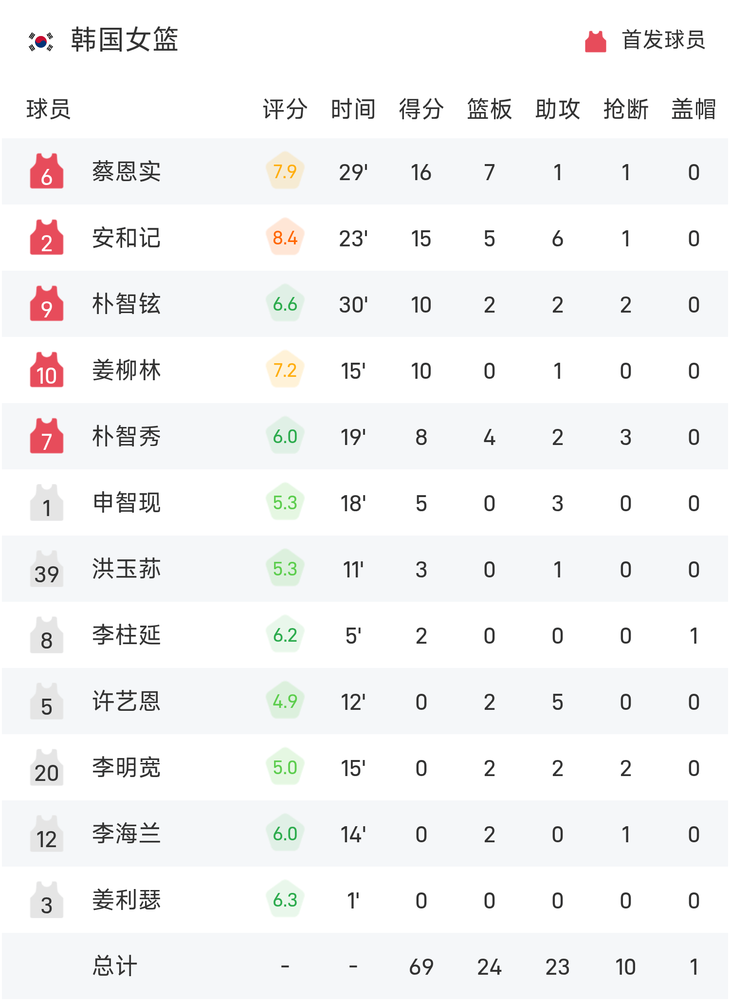 07月15日讯 女亚洲杯小组赛,韩国女篮对阵中国女篮。双方全场战罢,韩国女篮69-91不敌中国女篮。韩旭砍下全场最高的18分12板1助,率领中国女篮成功取胜。